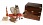 Description: 11“x 9.5“x 9” mahogany box with brass corners, escutcheon and drawer on one side. Label with directions on lid, ornate glass wet cell battery, which is turned on by tipping it. Multiple patent dates. Rheostat, posts and current adjuster. Battery can be removed on stand, coil is hidden. Drawer contains instruction book, wires, 3 handles, 2 of wood and metal, metal plates. Extremely ornate set.