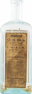 8.75” x 3” x 2”, an infallibal cure for chills, intermittant and remittent fever, limb ague. Chipped on a shoulder