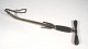 Description: 15.5” long instrument with checkered ebony handle and grip. There is a chain extended from the end which is adjusted in length coursely by pulling the handle after releasing two clips about 1/3 of the way from the top. The lock is in place and then the chain can be ratcheted tight by rocking the handle. Metal is steel and nickle plate.
