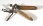 Description: 4.25“x1.25” brass bivalve speculum, originally nickle plated with much rubbed off. The two inch handle on bottom valve fold forward and the 2” handle on ring to top valve folds into the blades. The second handle has a ring opening. The valve opening is adjusted by a screw.