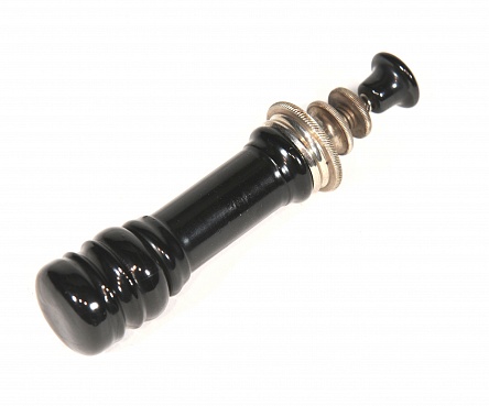 Description: Black wooden cylindrical shaped device with cap that screws off to reveal plate with multiple needles. The other end is capped in steel with F. Klee, W. Darrow, Pat June 19, 1865. KA rod with a black wooden cap inserts into steel end to control plate at other end and is activated by a spring to lance. 5.25” x1×1” d at middle. The most famous of these devices is the Baunscheidt Lebenswecker. That type is relatively common and was widely publicized by the inventor.