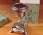 Description: Cardboard box 5” x 3 3/8” sq. contains device with metal stand and candle resembling a small fondue dish. The dish on top of the candle contains solidified formaldehyde for the sick room. It reads: “special disinfection during prevalence of epidemics and after recovery of patient from smallpox, scarlet fever, diphtheria, etc.”. It is unlikely that this device did anything to disinfect a room, but it probably made a lot of money for Dr. Leininger. They are common and it appears to have been used frequently.