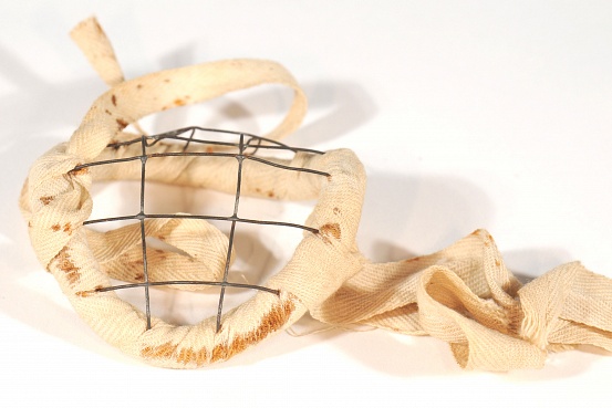 Description: Wire guard 3” in diameter with gauze wrapping on edges and gauze straps to protect vaccination area.