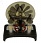 Description: 8×4.5×1.75” black iron stand with two 7.5” glass discs mounted so that turning a handle attached to a 3” wheel turns them against a pair of brushes on arms connected to two interupters and to two leydon jars each 4×1.5“d. The discs have a series of foil strips on the outside of each. Although not strictly medical, this is a precurser of contemporary of a wide variety of “curative devices” using static electricity.