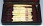 Description: 7.25×4.5×1.25” red silk lined case. Bottom contains 18 ivory handled ophtalmologic knives, all but two original. Also 1.5” silver ear speculum. Top opens to reveal two forceps, eyelid retractor and clamp. Plate holding these lifts out to reveal some suture material. Several pieces missing from small side compartments. Dr. F. Paquet, Routaix inscribed on top of case.