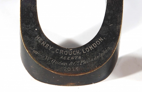Description: Base reads Henry Crouch, London, W. Queen , Philadelphia, agents. Lacquered brass binocular scope 16” high with a black glass covered circular state,Wenham prism. Black u-shaped base. Two extra objectives. Contains a condenser in the base. Lacking case.