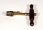 Description: 5” brass instrument, cutting tip is blued steel. Has grooved sides on trephine portion rather than later smooth design. Central pointed blade as a director and a screw adjustment on the side to set the blade. Handle is a brown hard wood 4.5” with a lacquer finish, held in place by a screw set.