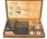 Description: 17.5“x 10“x 2.25” pine box with label above plus a machine for filling and sealing konseals (rice flour capsules). Directions in lid, left compartment contains six fillers and tampers, tin box with cover for liquid and cotton roller. Second contains actual apparatus, a heavy nickle plated brass device consisting of base on feet, two hinged covers with multiple holes of varied size for making konseal. There are also six compartments with various size konseals and two envelopes with directions to the patient for taking them as well as two booklets describing the apparatus..