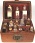 Description: 9“x 6“x 5.5” brown leather case, Hoffs Patent, March 27, 1883. Lid opens to red velvet lined interior with spaces for 22 small medicine bottles, 17 in place. Labels from Benham and Johnson, Montclair, N.J. Most vials have glass stopper, some from Johnson alone. Also contains a caustic stick and one label from Benham.