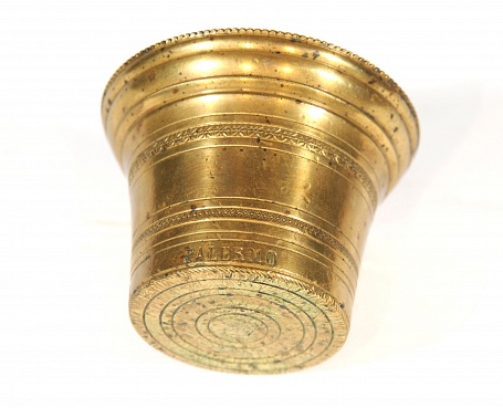 Description: Bronze mortar and pestle, mortar is 4” diameter, 3” high. The Pestle is 7.5” long. Both are stressed but appear probably to be late l9th or early 20th century copies. Copies of old mortars are extremely common. They are very had to date without some type of provenance. They should be approached with caution as to authenticity. The situation is made more complicated by the fact that they were used in many situations throughout the ages, so being commonly encountered does not either prove or disprove age.