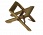 Description: Sawhorse type, consists of two pieces with 2“x5/8” cross bar and 3.75” legs, these are hinged by a screw with a rod about 2/3 from the bottom. One piece has a 1” arm which can be used to catch a slotted leg on one piece and thereby adjust the width for the paper, which is being folded.