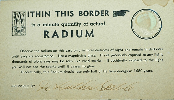 Category: Radionuclides Estimated Date: 1915 Name: Radium Card