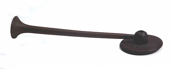 Description: 6.5 with 2” earpiece, the tube can be removed and inserted in the earpiece through two holes. Made of a composition material, apparently a thermoplastic.