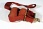 Description: 6“x3” tourniquet consists of a base pad, which is held in place by a cloth band to oppose a smaller pad connected by a brass screw to a brass handle, which can be turned to increase the pressure. Both pads are covered with a red suede, which is typical of the Charriere pieces and the cloth is a matching red.
