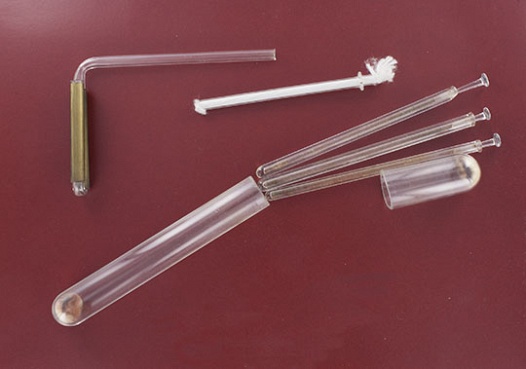 Description: 10.5“x 6.25“x 2.25” black leatherette box contains 7 pieces including a brass base, glass funnel, alcohol lamp mounted on a brass stand which screws into the base with an extension arm, two sets of glass tubes, an ivory chamber 5” long with a window to view levels and an ivory and glass arm, which screws into this and appears to be designed for inhalation. This device, invented by Chartroule in France, was used for diseases of the lung. It was associated with claims for the cure of asthma, and was even used for the treatment of Tuberculosis.
