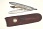 Description: 2“x 0.25” metal guards over a spear pointed blade. Made of aluminum and contained in a red leather case.