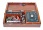 Description: 8.75“x4.5“x2” walnut box with dry cell and coil built into the bottom. There are numerous patent dates with the latest 12/20/92 and the earliest 2/23/86. Attachments are included in a small compartment 4“x3” and include connecting wires, 2 sponges of the disc type and 2 metal handles for usual sponges and a wooden handle for the discs. Wires connect at top of coil and rod to change voltage is on side. Identical to one made by John A Barret Battery Company cited in reference 419.