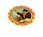 Description: Advertising button for malt whiskey, taking liberties with the past.