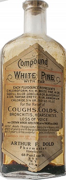 6” x 2 1/4” trapezoidal shaped bottle. It is of particular interest on this webiste because it was sold by Arthur F Dold of 68 Purchase St, Rye, NY. The town I live in. The same name with a different manufacturer is listed in the reference, but the manufacturer is from NY.