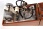 Description: 8 5/8” x 5 1/8” x 4 5/8” mahogany box opens to reveal lid with instructions. Machine mounted in base, there is a windup drive with a speed regulator and paper feed, which has a numbered edge on the paper for reference. A bottle of ink is mounted on the base and there are two pens attached to diaphragms. There are 2 sensors for venous tracings. The sensor for arterial tracing is missing. Rubber tubing present. Serial number L 9348.