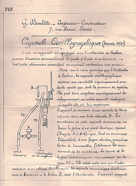Description: Capsule Oscillograph of Pachon. Wooden case 9.25“x 9“x 7” with complete set. The recorder with paper roll attached, clockwork advance mechanism, 3 recorders, one elaborate box like, two simple tambours, all three with pens to record on device key, extra pens, two sensors, one venous, the second arterial. Handwritten instructions with old address.