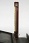 Description: 12” x 4” x 3” leatherette box contains an 11” high glass manometer which folds up and is calibrated on an ivorine scale from 0 to 35. The scale is labeled The Hammond Sphygmomanometer. The glass tubing is contained in a 1.5” wide cherry wood mount and is removable. There is a side rod to connect to the BP cuff and a bulbous top.