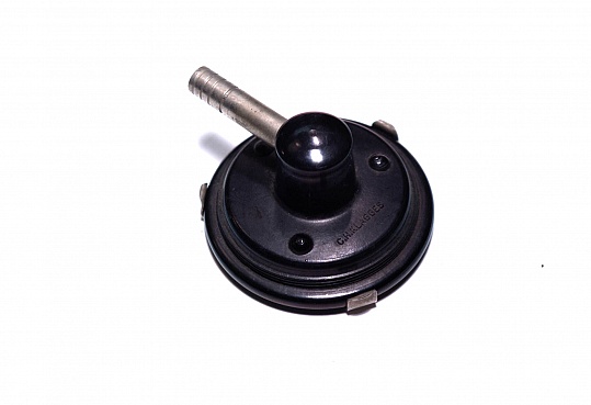 Description: 1.75” circular chest piece form a sthethoscope made of hard rubber or bakelite with a metal plate both with C. H. Klagges inscribed on it. There is a metal tube at right angles to attach the rubber tube on the diaphragm.