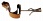 Description: 5” metal stethoscope of the bell type with two outlets to attach rubber tubing. The bell appears to have been repaired with extensive solder. The tube is riveted to a plate which is in turn riveted to a leather head strap.