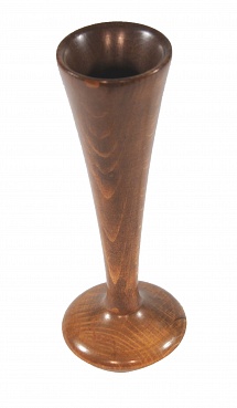 Description: Oak monaural stethoscope, fetal design. Earpiece is 2.25” with 5 5/8” long tube tapering from 0.5” to a 1 15/16” bell. The fetal stethoscopes are characterized by their short length and large bell, both to enhance the faint sounds of the fetal heartbeat.