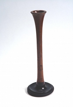 Description: 7 long, brown wood ( pine?) with vulcanite earpiece 2.25 which has a rubber ring around it for use as a reflex hammer . Chest piece 1 1/8 has a small chip in it. Same instrument is illustrated in the Tiemann catalogue. Tube is 7/16 dia.